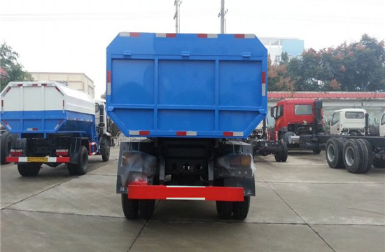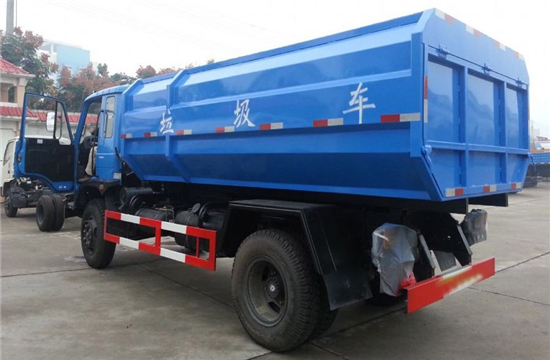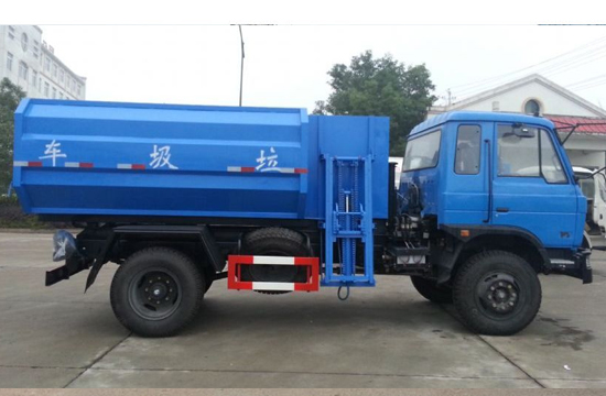 工作原理:自装卸式垃圾车是由密封式垃圾厢、液压系统、操作系统组成,能配几十个垃圾桶,实现一车与多个垃圾桶联合作业,厢体上的液压升降装置可将垃圾桶吊上、放下,上下升降,上下一次工作循环时间为50S,密封式厢体环保卫生,可避免二次污染。其自装式的挂桶装置可直接将路边的垃圾桶挂在上面用提升机直接到在垃圾箱体里面省去了装垃圾的麻烦。