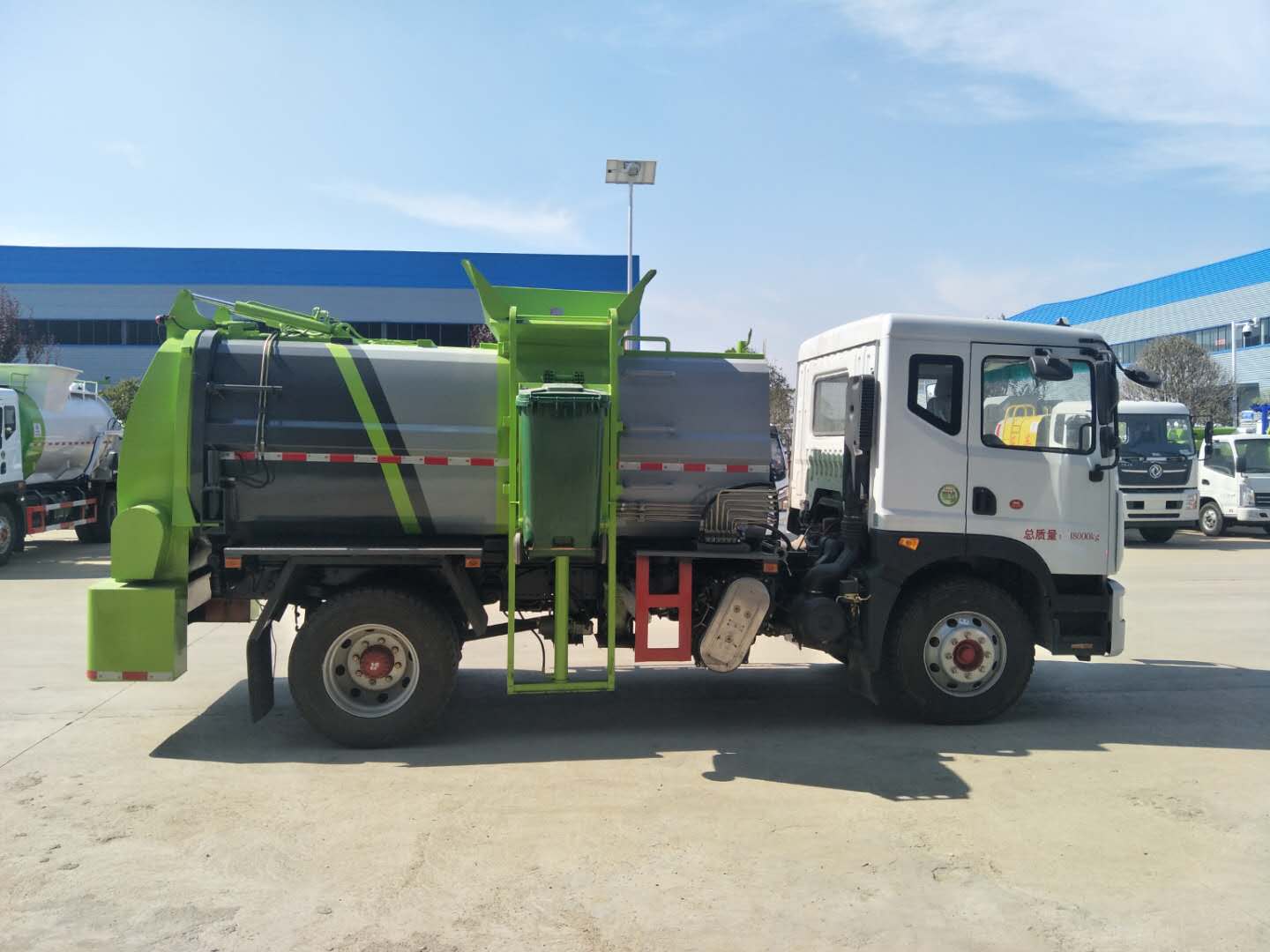 | 整车说明: | 1、该车设置垃圾箱及提升机构主要用于餐厨垃圾的收集与运输。2、整车外形长(mm)=前悬(mm)+轴距(mm)+后悬(mm)对应关系:6950=1260+3950+1740,7500=1260+4500+1740; 3.防护材料:Q235A碳钢,连接方式:左右侧面防护均采用焊接连接,后防护用专用装置代替,离地高490mm; 4.ABS型号:J ABS,ABS生产厂家:焦作博瑞克控制技术有限公司; 5,所用发动机的型号:B6.2NS6B210 ,CY4SK761,D4.0NS6B195,D4.5NS6B220,YCS04200-68.B6.2NS6B230. 5.当驾驶室准乘人数为2人,载质量为9920,当驾驶室准乘人数为3人,载质量为9855 | ||
