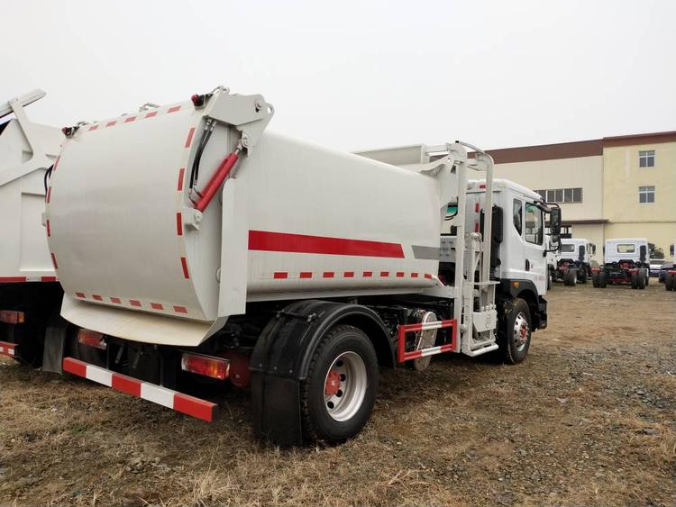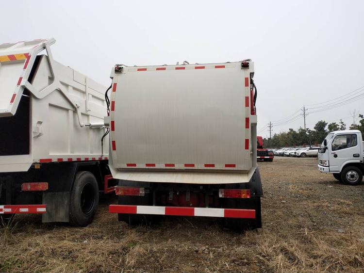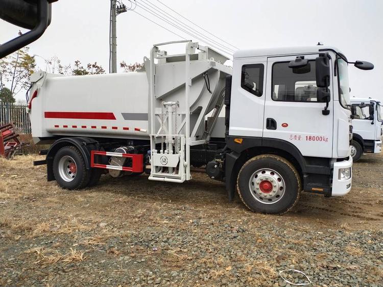 工作原理:自装卸式垃圾车是由密封式垃圾厢、液压系统、操作系统组成,能配几十个垃圾桶,实现一车与多个垃圾桶联合作业,厢体上的液压升降装置可将垃圾桶吊上、放下,上下升降,上下一次工作循环时间为50S,密封式厢体环保卫生,可避免二次污染。其自装式的挂桶装置可直接将路边的垃圾桶挂在上面用提升机直接到在垃圾箱体里面省去了装垃圾的麻烦。