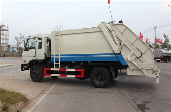 东风153压缩式垃圾车整车配置:东风153底盘,玉柴170马力或者康明斯190马力发动机,4500mm轴距,10.00尼龙胎,带方向助力,12方垃圾箱体,箱体材料厚度边三底四。