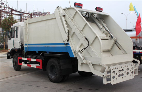 国内知名品牌东风原装底盘(全国联保)、垃圾箱(密封式)、污水箱、填装器、刮板、挂桶装置、取力器、多路换向阀、液压系统、操作系统等组成。(举升油缸及锁紧油缸系我厂自行研发生产的双作用油缸。)